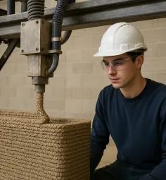 Former nos étudiants aux techniques constructives du futur grâce à l’impression 3D béton de matériaux biosourcés.